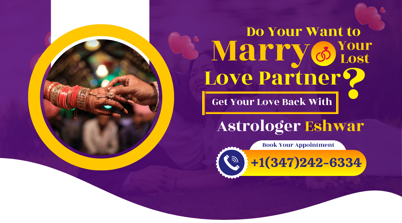 Love and marriage problems can often bring stress and uncertainty, but with the guidance of Astrologer Eshwar, you can restore peace and harmony in your relationships. As one of the most respected astrologers in the USA, he specializes in reuniting lost love, resolving husband-wife disputes, and offering astrology-based solutions for happy married life. His effective remedies have helped couples rebuild trust, rekindle love, and strengthen their bond.